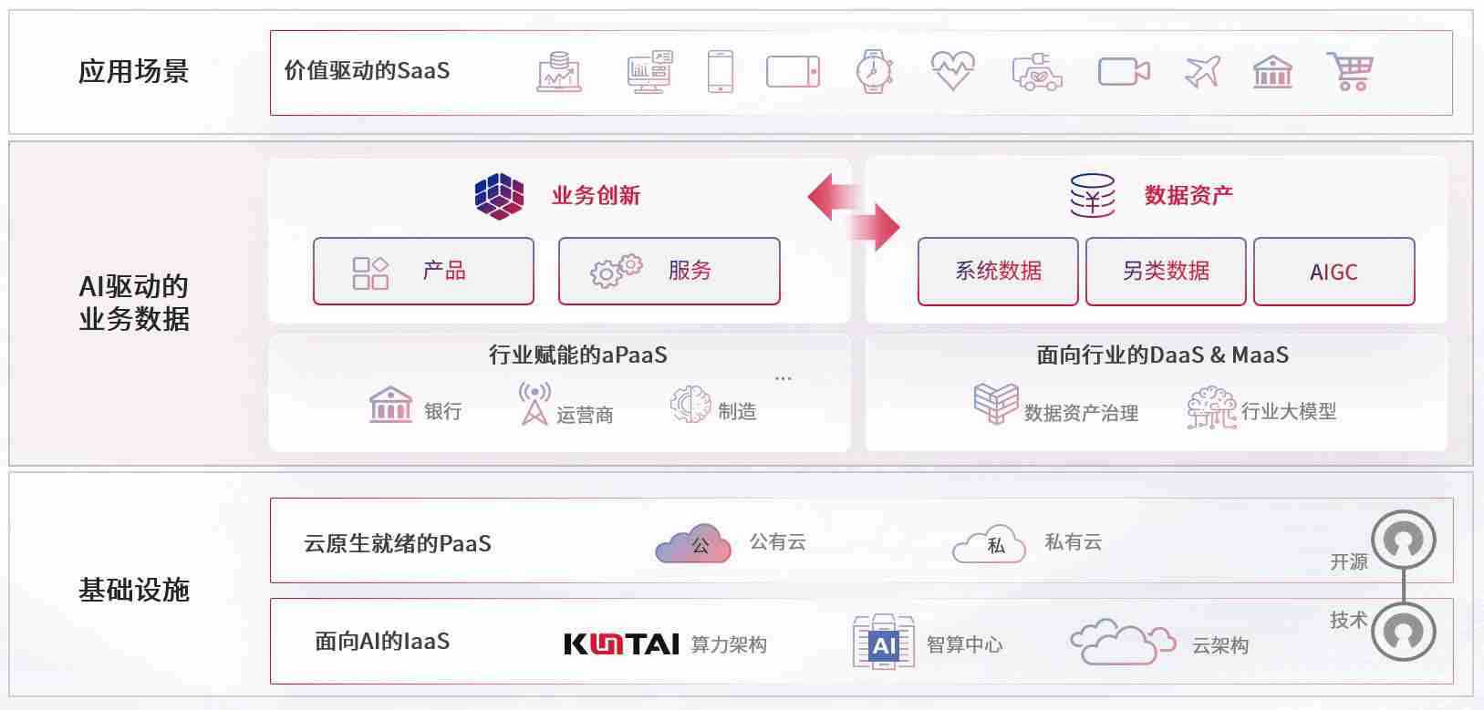 数字时代,,,,围绕企业数字化转型的关键要素,,人生就是搏数码开创性的提出数云融合战略和技术体系框架,,,,着力在云原生、、数字原生、、、AI原生和信创产业上架构产品和服务能力,,,,为处在不同数字化转型阶段的快消零售、、汽车、、金融、、、医疗、、、、政企、、、教育、、、、运营商等行业客户提供泛在的敏捷IT能力和融合的数据驱动能力,,,,构建跨界融合创新的数字业务场景和新业务模式,,,,助力企业级客户建立面向未来的核心能力和竞争优势,,,,全面推动社会的数字化、、智能化转型升级。。。。
